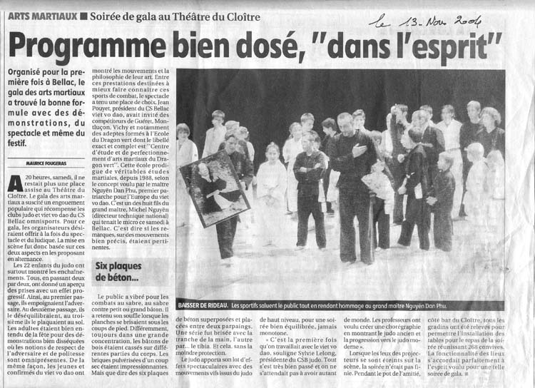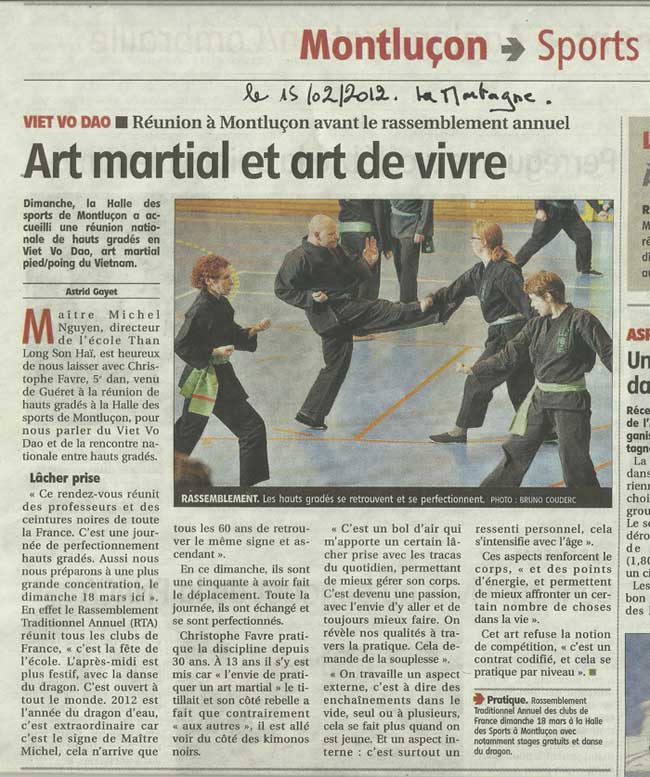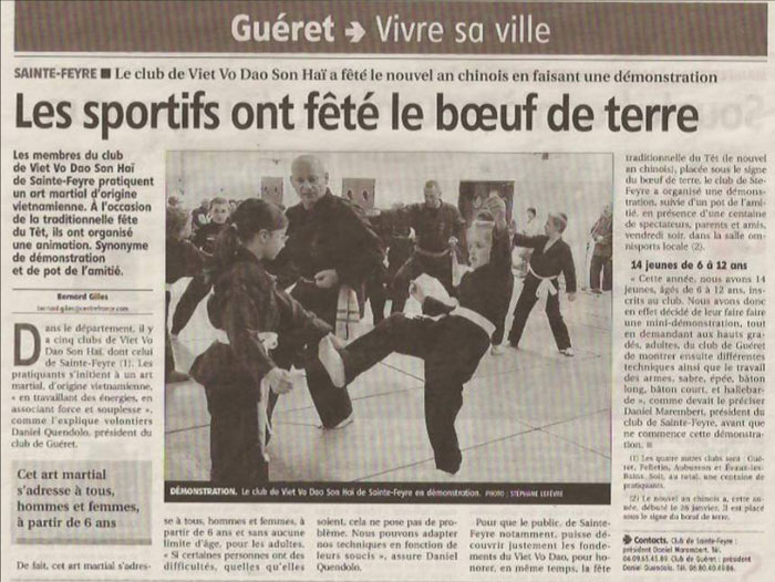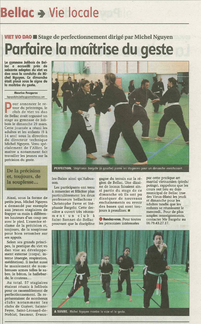 Article de presse le populaire. Stage Bellac 29.03.09.